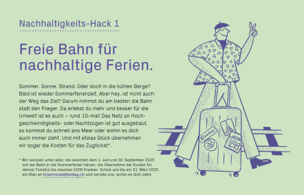 Mit monatlichen «Hacks» regen wir unsere Mitarbeitenden zum Nach- und Umdenken an. Nicht mit Verboten, Verzicht oder dem erhobenen Zeigefinger, sondern mit praktischen Tipps, die Spass machen.