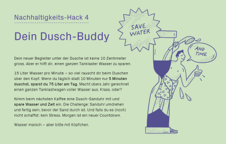 Mit monatlichen «Hacks» regen wir unsere Mitarbeitenden zum Nach- und Umdenken an. Nicht mit Verboten, Verzicht oder dem erhobenen Zeigefinger, sondern mit praktischen Tipps, die Spass machen.