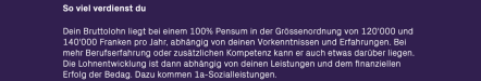 Schon seit Jahren veröffentlichen wir in den Stelleninseraten die Lohnbandbreite und gehören damit zu den Pionieren in der Schweiz. Das kommt bei den Stellensuchenden sehr gut an - die finanziellen Möglichkeiten sind abgesteckt, bevor beide Seiten viel Zeit ins Kennenlernen investieren.